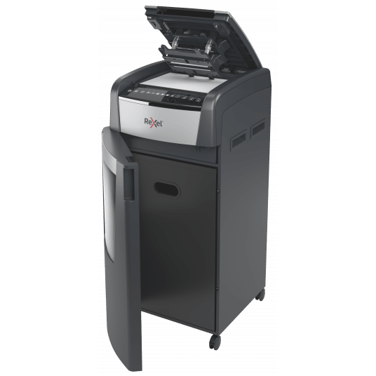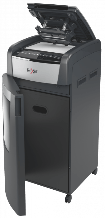 - wyposażona jest w automatyczny podajnik i 110-litrowy pojemnik na ścinki, co sprawia, że idealnie nadaje się do użytku biurowego