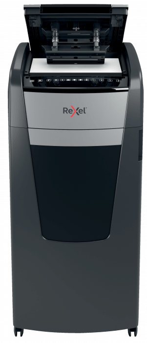 - jednorazowo niszczy automatycznie do 600 kartek A4 (80 gsm), tnąc arkusze na mikrościnki (o wymiarach 2 x 15 mm), co zapewnia poziom bezpieczeństwa P-5