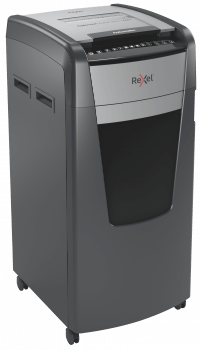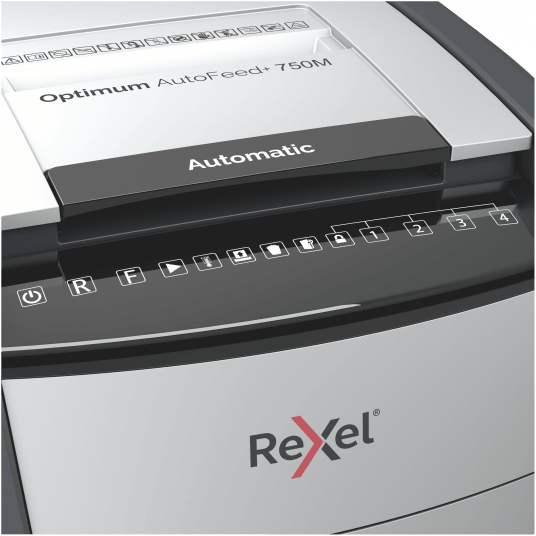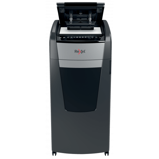 - jednorazowo niszczy automatycznie do 750 kartek A4 (80 gsm), tnąc arkusze na mikrościnki (o wymiarach 2 x 15 mm), co zapewnia poziom bezpieczeństwa P-5