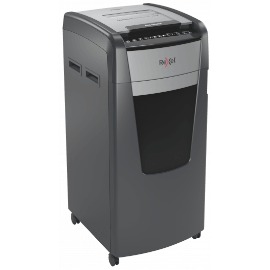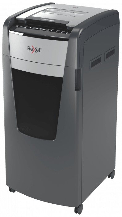 - jednorazowo niszczy automatycznie do 750 kartek A4 (80 gsm), tnąc arkusze na konfetti (o wymiarach 4 x 30 mm), co zapewnia poziom bezpieczeństwa P-4