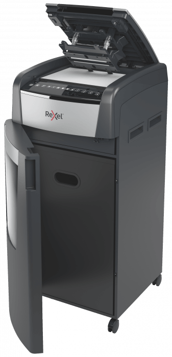 - Wyposażona jest w automatyczny podajnik i 140-litrowy pojemnik na ścinki, co sprawia, że idealnie nadaje się do użytku biurowego