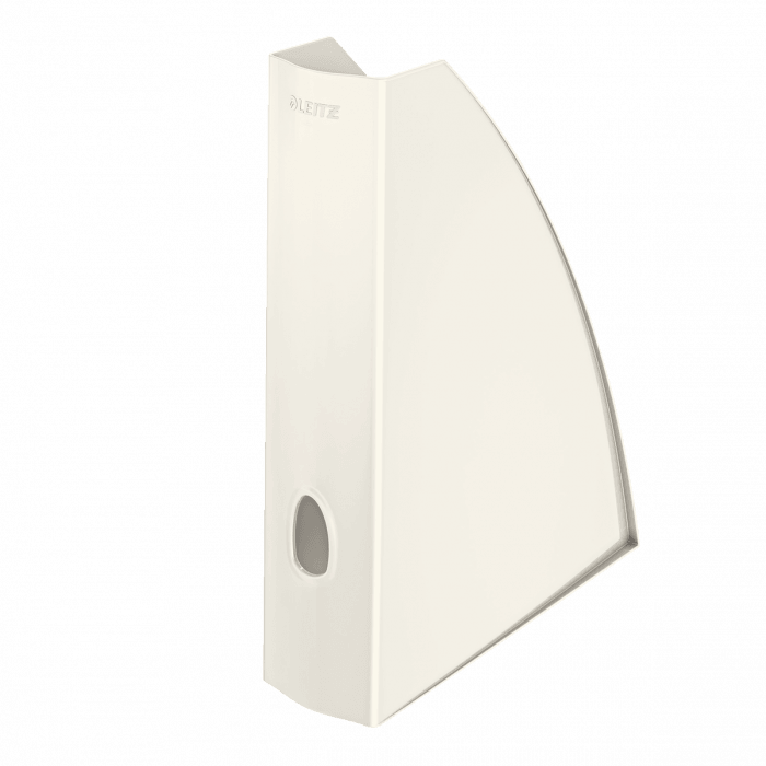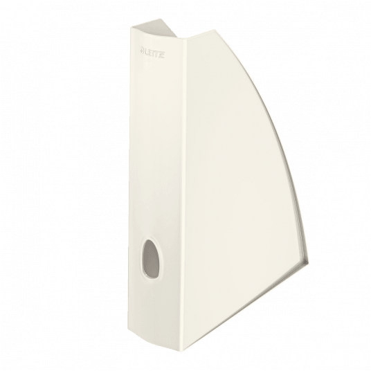 Pojemnik na czasopisma do przechowywania czasopism i różnego rodzaju katalogów - szerokość 6 cm. - niezwykle mocny i wytrzymały - z otworem na grzbiecie ułatwiającym wyjmowanie - wymiary: 75 x 312 x 258 mm - kolor: biały perłowy.