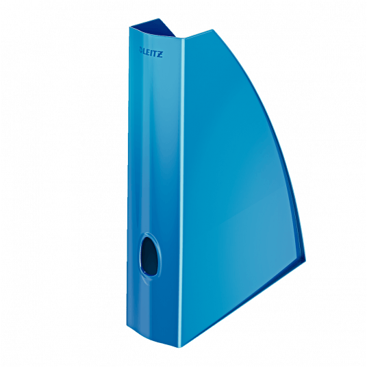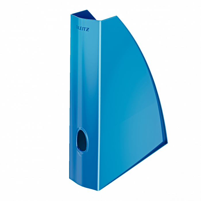 Pojemnik na czasopisma do przechowywania czasopism i różnego rodzaju katalogów - szerokość 6 cm. - niezwykle mocny i wytrzymały - z otworem na grzbiecie ułatwiającym wyjmowanie - wymiary: 75 x 312 x 258 mm - kolor: niebieski metaliczny.