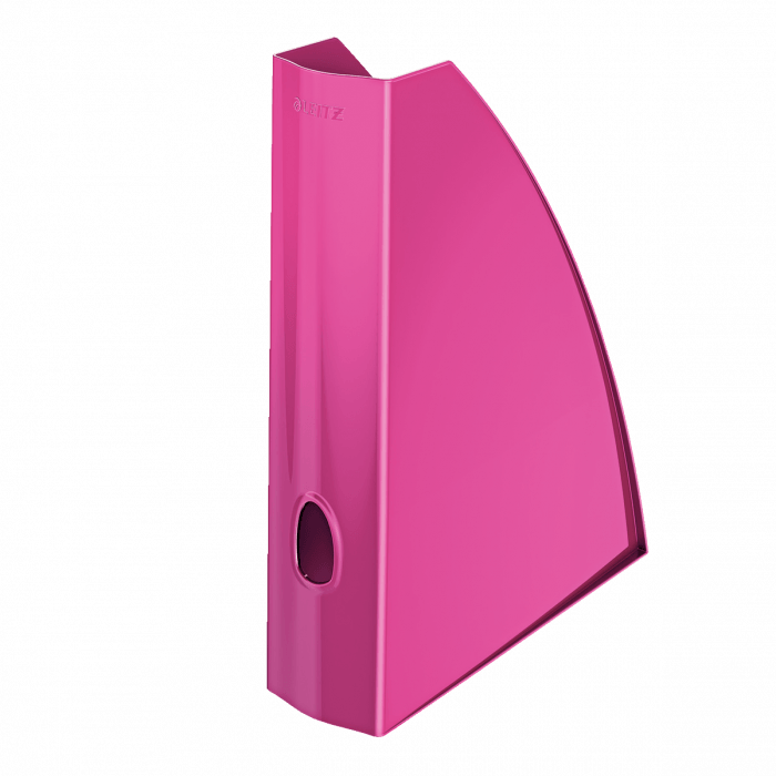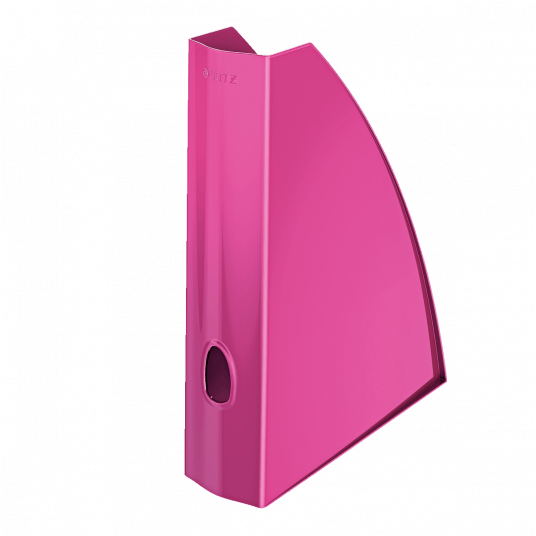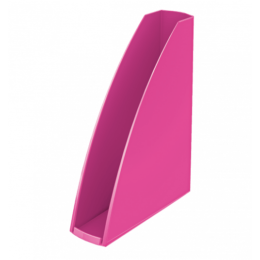 Pojemnik na czasopisma do przechowywania czasopism i różnego rodzaju katalogów - szerokość 6 cm. - niezwykle mocny i wytrzymały - z otworem na grzbiecie ułatwiającym wyjmowanie - wymiary: 75 x 312 x 258 mm - kolor: różowy metaliczny.
