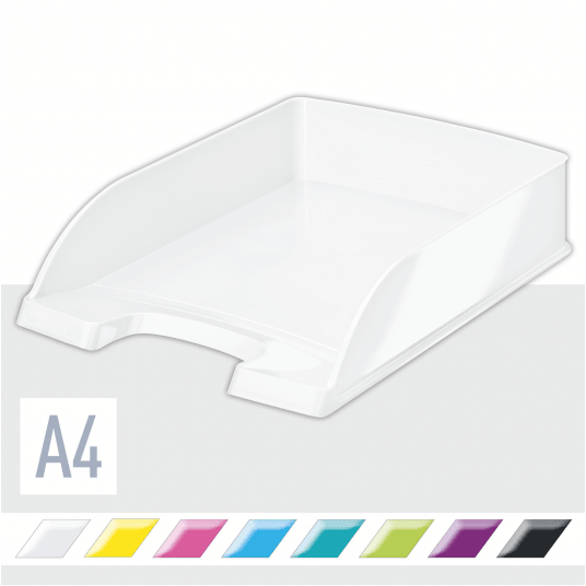 Najwyższej jakości stylowa półka na dokumenty w niezwykłych, przykuwających wzrok kolorach, z efektownym błyszczącym wykończeniem. - najtrwalsza półka w swojej klasie, mocna i wytrzymała - wyższe ścianki boczne gwarantują większą od przeciętnej pojemność - ułatwia organizację dokumentów dzięki możliwości ustawiania półek schodkowo lub pionowo jednej na drugiej - łatwy dostęp do dokumentów dzięki szerokiemu wycięciu z przodu - kolor: biały metaliczny.