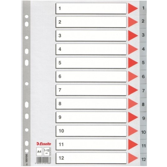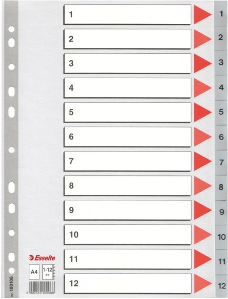 Przekładki plastikowe Esselte PP A4 numeryczne 1 - 12
