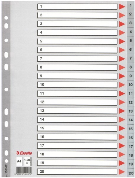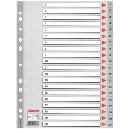 Przekładki plastikowe Esselte PP A4 numeryczne 1 - 20