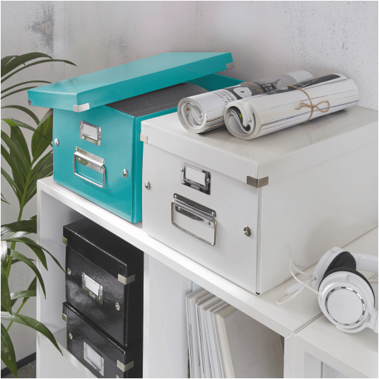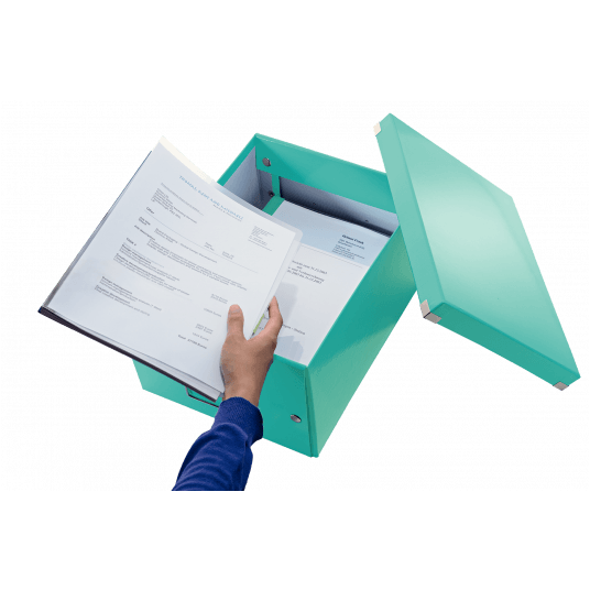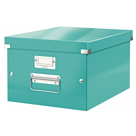 Średniej wielkości uniwersalne pudełko do przechowywania lub przenoszenia przedmiotów w formatach do A4. - szybkie i łatwe składanie/rozkładanie dzięki konstrukcji spinanej na napy (umożliwia redukcję powierzchni potrzebnej do przechowywania, kiedy pudełko nie jest używane) - laminowana powierzchnia gwarantuje wspaniały wygląd, dłuższą żywotność produktu oraz łatwość usuwania zabrudzeń - możliwość łatwego opisu zawartości dzięki wysokiej jakości metalowym ramkom na etykiety i białym etykietom - wytrzymałe metalowe uchwyty do wygodnego przenoszenia pudła - wykonane z wysokiej jakości wytrzymałego kartonu - opatentowana konstrukcja zapewnia dodatkową ochronę przed przypadkowym otwarciem pudełka z cięższą zawartością - wymiary: 281 x 200 x 370 mm - kolor: turkusowy metaliczny.