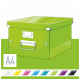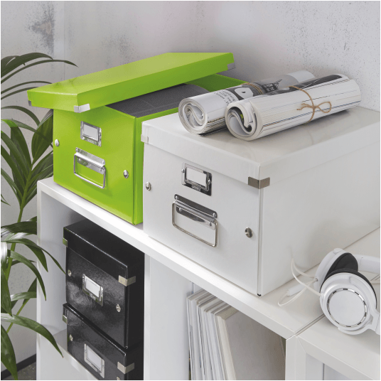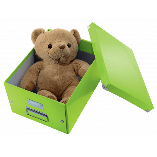 Średniej wielkości uniwersalne pudełko do przechowywania lub przenoszenia przedmiotów w formatach do A4. - szybkie i łatwe składanie/rozkładanie dzięki konstrukcji spinanej na napy (umożliwia redukcję powierzchni potrzebnej do przechowywania, kiedy pudełko nie jest używane) - laminowana powierzchnia gwarantuje wspaniały wygląd, dłuższą żywotność produktu oraz łatwość usuwania zabrudzeń - możliwość łatwego opisu zawartości dzięki wysokiej jakości metalowym ramkom na etykiety i białym etykietom - wytrzymałe metalowe uchwyty do wygodnego przenoszenia pudła - wykonane z wysokiej jakości wytrzymałego kartonu - opatentowana konstrukcja zapewnia dodatkową ochronę przed przypadkowym otwarciem pudełka z cięższą zawartością - wymiary: 281 x 200 x 370 mm - kolor: zielony metaliczny.