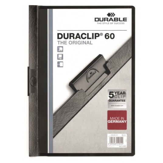 - skoroszyty A4 umożliwiające przechowywanie dokumentów bez potrzeby dziurkowania - zacisk wykonany ze specjalnej elastycznej stali - posiadają 5-letnią gwarancję na siłę docisku - przezroczysta okładka - pojemność: Duraclip 60 - 60 kartek