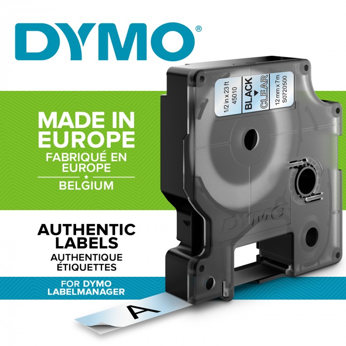 Taśma Dymo D1 12 mm x 7 m czarny na przezroczystym tle