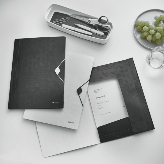 - mieści się w teczce z gumką o grzbiecie 30 mm, w pojemniku na czasopisma i na półce na dokumenty