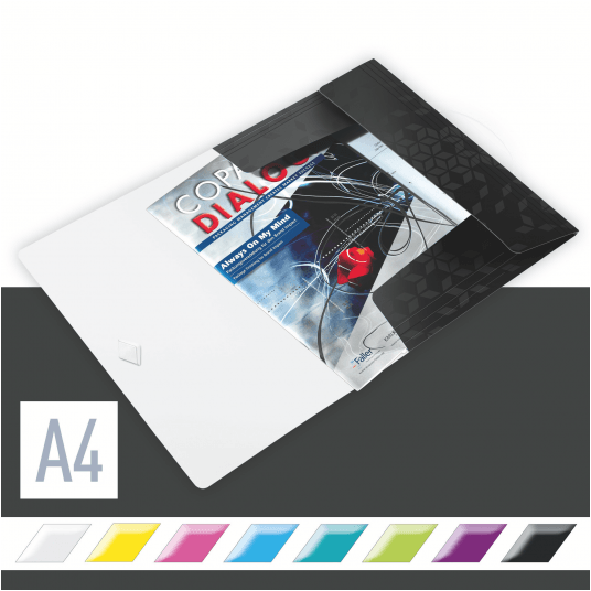 Wysokiej jakości teczka z polipropylenu w żywych kolorach WOW z dwubarwnym wykończeniem.