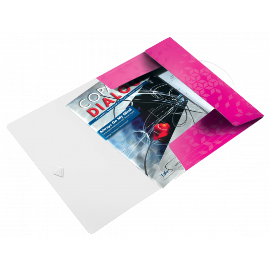 Wysokiej jakości teczka z polipropylenu w żywych kolorach WOW z dwubarwnym wykończeniem.