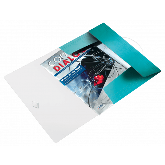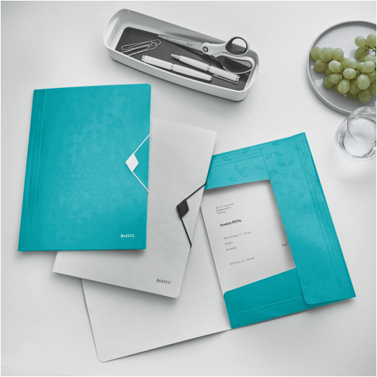Wysokiej jakości teczka z polipropylenu w żywych kolorach WOW z dwubarwnym wykończeniem.