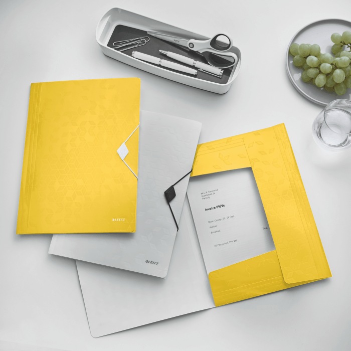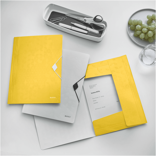 Wysokiej jakości teczka z polipropylenu w żywych kolorach WOW z dwubarwnym wykończeniem.